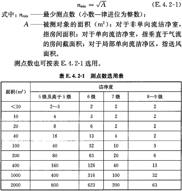 E.2.2 對于潔凈度5級或優(yōu)于5級的單向流潔凈室,還應測定在門(mén)開(kāi)啟狀態(tài)下,離門(mén)口0.6m處的室內側工作面高度的粒子數。