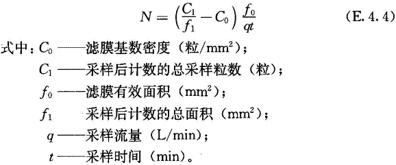 3)測定之前,必須先測出使用的同一批濾膜的基數密度,最后的計數濃度由下式得出: