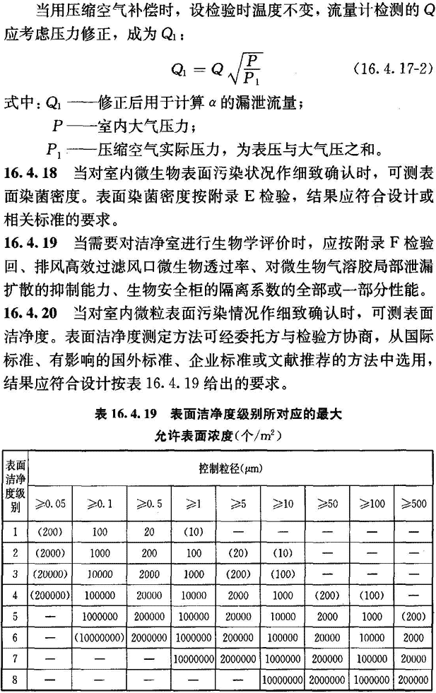 16.4.5 空氣潔凈度級別應按附錄E檢驗微粒計數濃度,然后按以下程序計算出空氣潔凈度級別并評價(jià)。